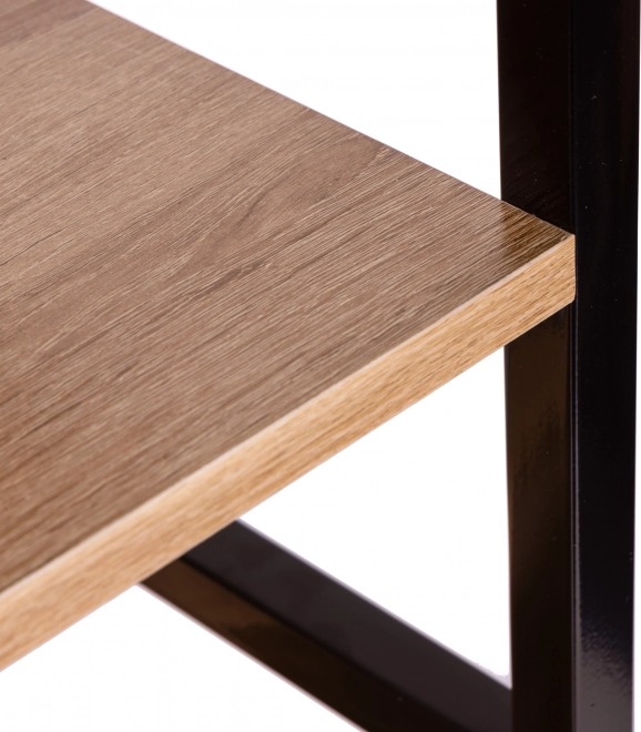 Kombinácia čierneho kovového rámu a MDF políc ponúka moderný vzhľad a spoľahlivú konštrukciu.