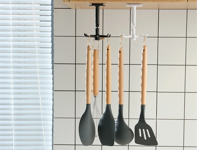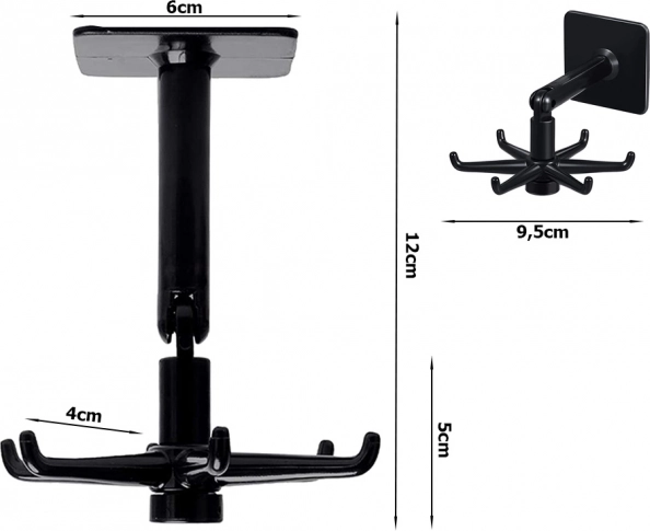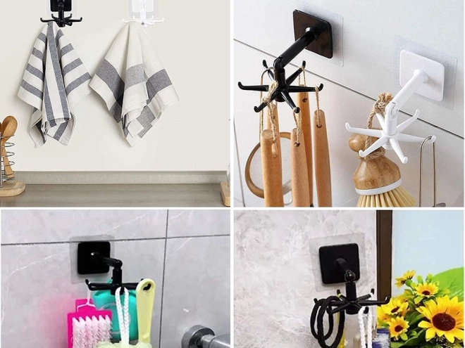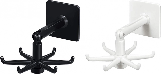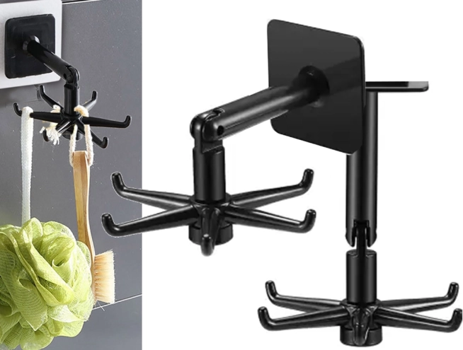 Vešiak je vyrobený z kvalitného plastu a je navrhnutý tak, aby poskytoval všestranné riešenie pre zavesenie nielen kuchynského riadu, ale aj kúpeľňových doplnkov ako sú hubky či uteráky. Vďaka otočnému dizajnu o 360° môžete jednoducho a rýchlo pristupovať ku všetkým uloženým veciam.