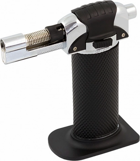 Prenosný plynový horák typu JET. Ideálne sa hodí na spájkovanie, opaľovanie alebo rozmrazovacie práce. Má integrované piezoelektrické zapaľovanie a blokovacie (bezpečnostné) tlačidlo. Možno ho plniť bežným plynom do zapaľovačov! Je vybavený gombíkom na nastavenie sily prúdu plynu a pohodlnou pogumovanou rukoväťou.