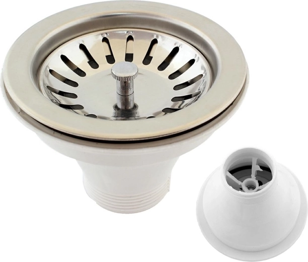 Pevná kovová zátka drezu kompletná s potrebným príslušenstvom na inštaláciu. Vďaka štandardným rozmerom ju ľahko umiestnite do kuchynského drezu.