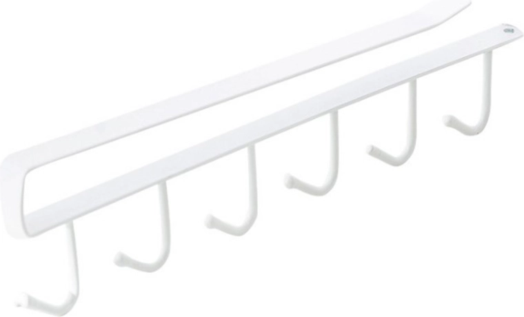Pohodlný kovový vešiak pod skriňu. Je vybavený až 6 háčikmi, ktoré umožňujú zavesiť akékoľvek kuchynské príslušenstvo. Je určený na montáž vo vodorovnej polohe. Ideálny do stiesnených kuchýň, šetrí cenné miesto na pracovnej doske. Prídavný otvor na skrutku umožňuje trvalú montáž vešiaka.