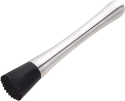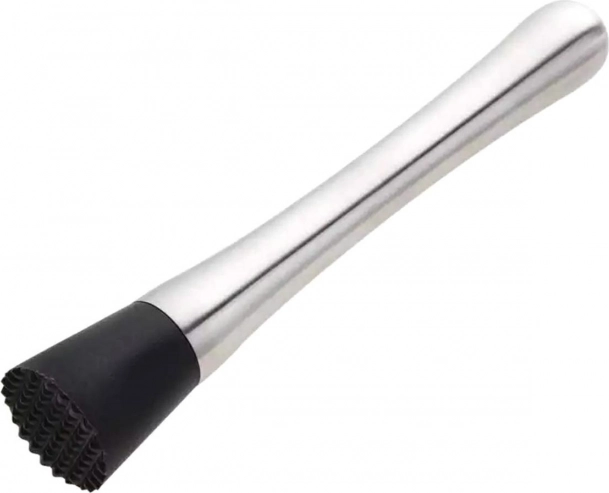 Štýlový barmanský tĺčik na prípravu osviežujúcich koktailov. Tento základný nástroj je vyrobený z pevnej ocele a má ergonomicky tvarovanú rukoväť pre pohodlné držanie. Koncovka tĺčika je z tvrdého, perforovaného materiálu na efektívne miešanie ingrediencií.