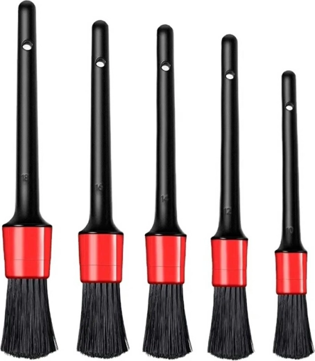 Sada piatich kompaktných kefiek na čistenie interiéru vášho vozidla. Vynikajúce na čistenie jemných zákutí a škár vo vnútri vášho auta. Mäkké nylonové štetiny sú ideálne na zber prachu a iných nečistôt bez poškodenia materiálov použitých v interiéri. Dlhé a pohodlné rukoväte uľahčujú prácu s kefkou v úzkych štrbinách. Prídavný otvor v rukoväti umožňuje zavesenie kefky na háčik.