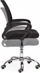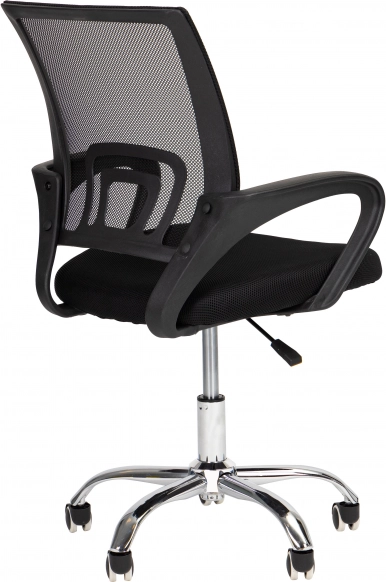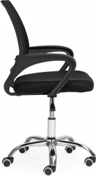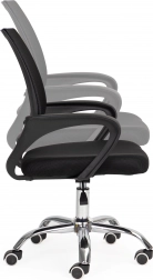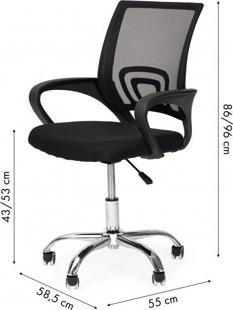 Stolička je vybavená ľahko ovládateľnými mechanizmami pre plné nastavenie, čo ju činí užívateľsky prívetivou. Odolná sieťovina na operadle zaisťuje dobrú ventiláciu, zatiaľ čo kovová, chrómovaná základňa s päticou kolies dodáva stabilitu a mobilitu.
