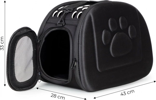 Prepravka bola špeciálne navrhnutá pre komfortnú a bezpečnú prepravu vašich miláčikov, a je preto vhodná pre stredné až väčšie domáce miláčiky ako sú psy či mačky. Odolný materiál zaisťuje dlhú životnosť a komfortný dizajn pohodlie pre zvieratá aj pre majiteľa počas nosenia.