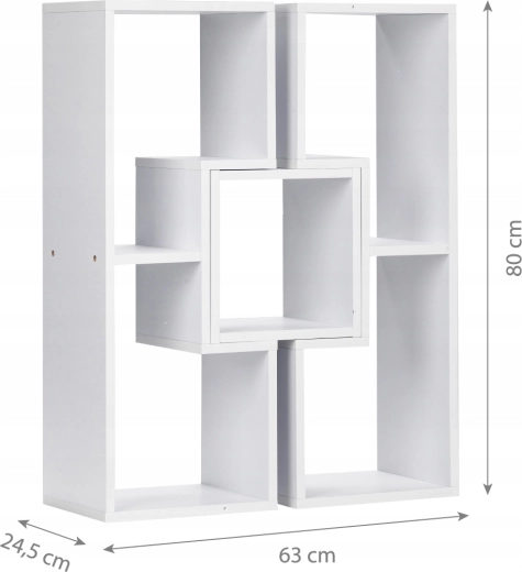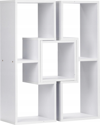 Elegantný biely regál s trojdielnou modulárnou konštrukciou ponúka maximálnu flexibilitu usporiadania. Dva väčšie diely a centrálny štvorec môžete skladať podľa potreby a vytvoriť z neho policu, skrinku alebo nízku komodu. Otvorené priehradky pomôžu prehľadne uložiť knihy, dekorácie, škatule aj obuv.
