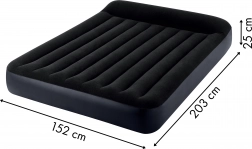 Zamatová matrac INTEX, s rozmermi 203 x 152 x 25 cm, je ideálna pre 2 osoby. Vyrobená z odolného PVC materiálu , vrchná časť je potiahnutá na dotyk príjemným vodoodolným zamatovým materiálom. Celok v príjemnej tmavomodrej farbe sa hodí do každého interiéru. Vďaka zabudovanej elektrickej pumpe (napájanie 220 - 240 V). Čas potrebný na prípravu nafukovacej postele na použitie je 250 sekúnd. Vďaka bostonskému ventilu ju za minútu vyfúknete, zložíte a uložíte do skrine.