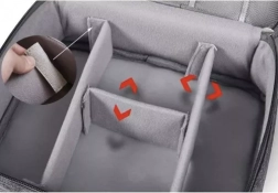 Hlavná časť organizéra obsahuje nastaviteľné a oddelené priehradky pre najrôznejšie druhy káblov, nabíjačiek a iného príslušenstva. Priehradky siete a gumičky zaručujú, že všetko zostane na svojom mieste. S rukoväťou pre snadné prenášanie je to ideálny spoločník na cestách, do kancelárie alebo na schôdzky.