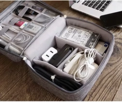 Chráňte a organizujte svoje káble a elektronické príslušenstvo s praktickým organizérom, ktorý ponúka vysokú kapacitu, vodoodolný materiál a prenosnosť vďaka pohodlnej rukoväti.