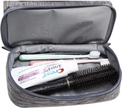 Taška je vyrobená z materiálov odpudzujúcich vodu, čo je ideálne na použitie v kúpeľni alebo na cestách.