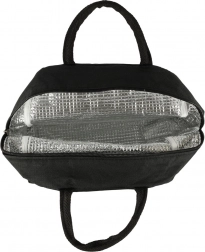 Vďaka priestrannému hlavnému vrecku pohodlne uložíte dózu s jedlom aj nápoj. Predné vrecko je ideálne na príbor, servítky alebo mobil. Pevné textilné ušká zabezpečujú pohodlné prenášanie a jednofarebný materiál sa ľahko čistí.