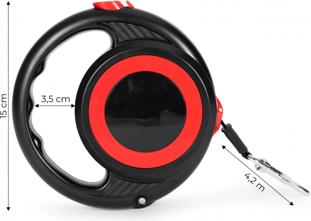 Praktické samonavíjacie vodidlo s dĺžkou 4,2 m pre psov aj mačky zabezpečí pohodlie pri prechádzkach a zároveň plnú kontrolu nad vaším miláčikom. Disponuje spoľahlivou aretačnou poistkou, ergonomickou rukoväťou a otočnou oceľovou karabínou proti prekročeniu vodidla. Odolné prevedenie značky PETSI.