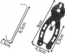 Tieto univerzálne kliešte sú navrhnuté na ľahké otváranie aj zatváranie rýchlospojok na reťaziach bicyklov. Vďaka presnej mechanike a pružine zvládnete údržbu reťaze rýchlo, bezpečne a bez zbytočnej námahy. Súčasťou je praktický háčik na reťaz, ktorý udrží reťaz napnutú pri čistení, mazaní alebo výmene.