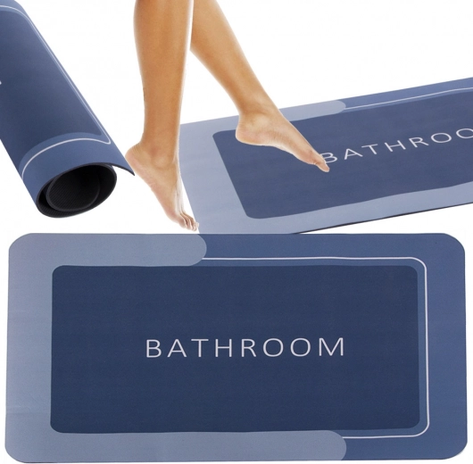 Rýchloschnúca protišmyková kúpeľňová predložka Bathroom 58 × 38 cm – modrá
