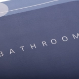 modré odtiene, nápis BATHROOM