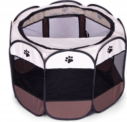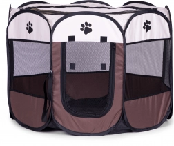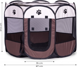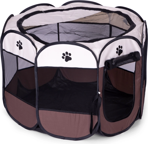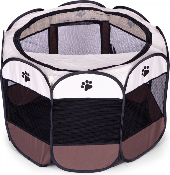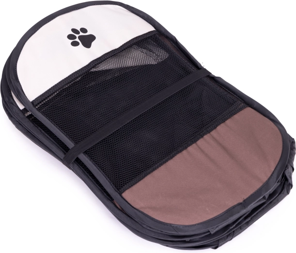 Praktická a ľahká samorozkladacia ohrádka pre psov, šteniatka, mačky a malé zvieratá s vetranými sieťovanými stenami a horným krytom na zips. Ideálna do interiéru aj exteriéru na bezpečný oddych, tréning aj krátkodobé obmedzenie pohybu. Stabilná pružinová konštrukcia, jednoduché čistenie a pohodlný vstupný otvor pre maximálny komfort miláčikov.