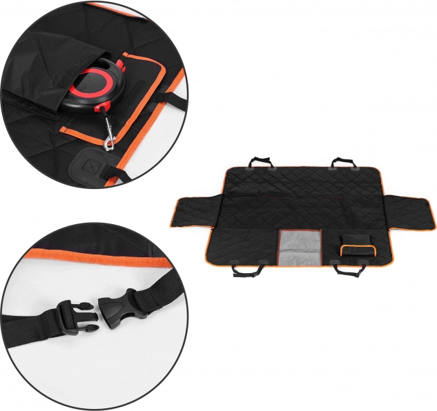 Univerzálny autopoťah PETSI chráni čalúnenie pred srsťou, vlhkosťou a nečistotami. Vďaka vodoodolnému materiálu, protišmykovej spodnej strane a uchyteniu popruhmi pokrýva celú zadnú lavicu a operadlá, drží na mieste a ponúka bezpečie aj pohodlie pre vášho miláčika. Praktické vrecko na drobnosti a jednoduchá inštalácia z neho robia ideálne riešenie na cesty.