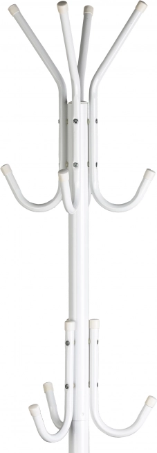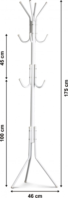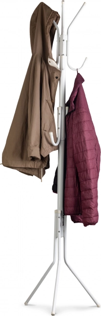 Praktický stojanový vešiak ModernHome je ideálny na každodenné odkladanie kabátov, búnd, kabeliek aj klobúkov. Hornú časť tvoria štyri ramená na pohodlné zavesenie viacerých kusov oblečenia, v strednej zóne nájdete ďalšie háčiky na doplnky. Stabilná kovová konštrukcia a ochranné koncovky nôh chránia podlahu a zabezpečujú istotu pri plnom zaťažení.