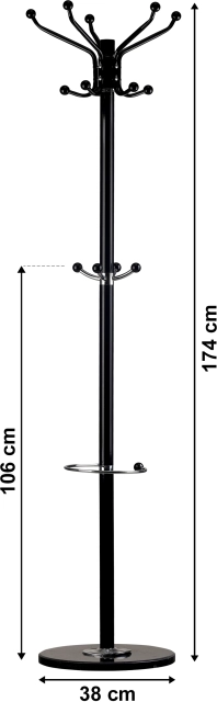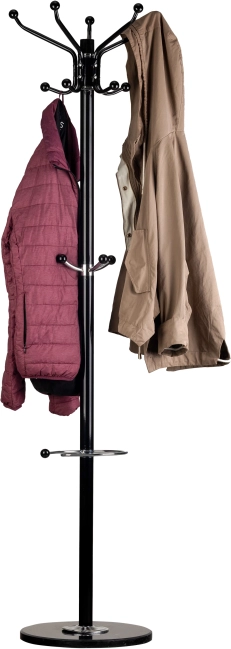V hornej časti je päť ramien, na ktoré možno zavesiť po dve bundy. V polovici výšky sú ďalšie háčiky, vhodné na klobúky, dáždniky alebo kabelky.
