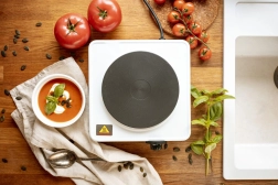 Ovládanie je intuitívne – otočným gombíkom zvolíte jednu z 5 úrovní teploty. Oceľové telo v bielej farbe sa ľahko čistí, gumové nožičky zabezpečujú stabilitu na pracovnej doske a kontrolka informuje o zapnutí. Kompaktné rozmery a dĺžka prívodného kábla 85 cm z neho robia skvelého spoločníka na cesty, do prenájmu či ako zálohu pri výpadku hlavného sporáka.
