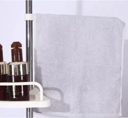 Police sú vyrobené z odolného PP s hladkým povrchom, ktorý sa ľahko čistí, a majú drenážne otvory pre rýchly odtok vody. Stĺpik z nehrdzavejúcej ocele s prvkami z PET a silikónu je stabilný a odolný voči vlhkosti. Každú policu možno ľubovoľne výškovo posúvať a otáčať okolo osi, takže si rozloženie ľahko prispôsobíte vlastným potrebám. Montáž je rýchla a bezpečná vďaka rozpernému mechanizmu s gumovými koncovkami – bez vŕtania a bez poškodenia obkladov.