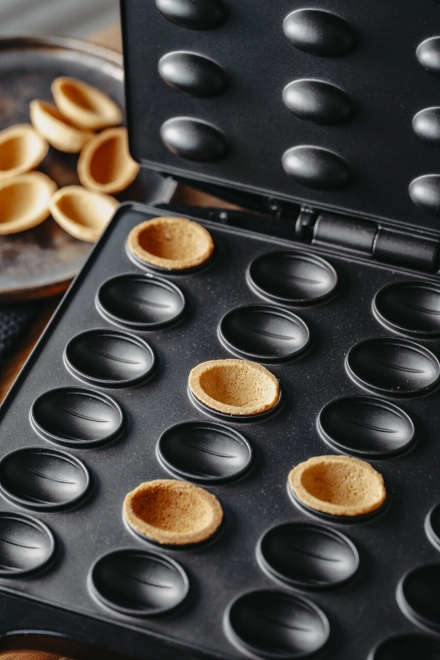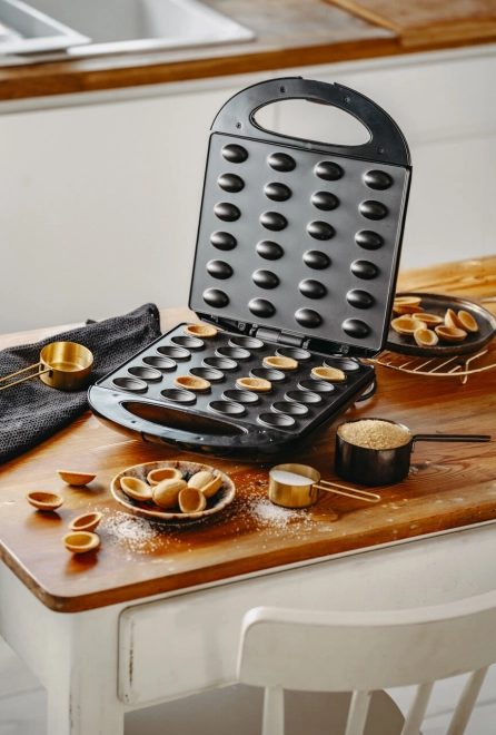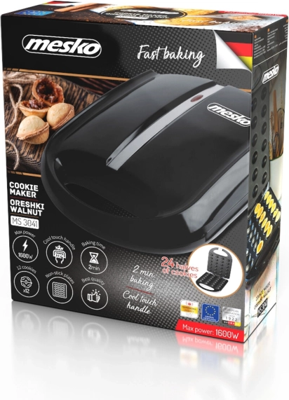 Domáce orechové sušienky s krémom za 2 minúty? S opiekačom MESKO XL to zvládnete kedykoľvek. Veľká pečiaca plocha vytvorí v jednom cykle 24 veľkých polovíc, ktoré ľahko spojíte do plnených orieškov – nasladko aj naslano. Nepriľnavé dosky zaistia čisté vybratie a rýchle čistenie.