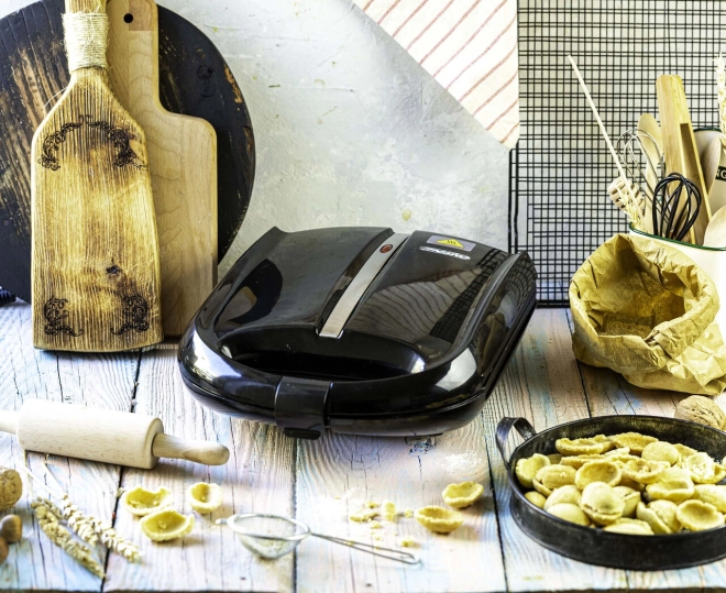 Praktická výbava pre každú kuchyňu: termoizolované rukoväte, západka veka pre istý prítlak, kontrolka prevádzky a protišmykové nožičky pre stabilitu. Vďaka vysokému výkonu až 1600 W zvládnete hosťom upiecť niekoľko dávok behom chvíľky.
