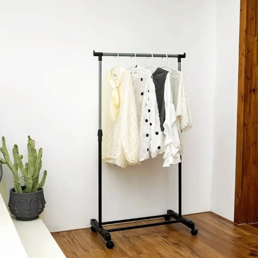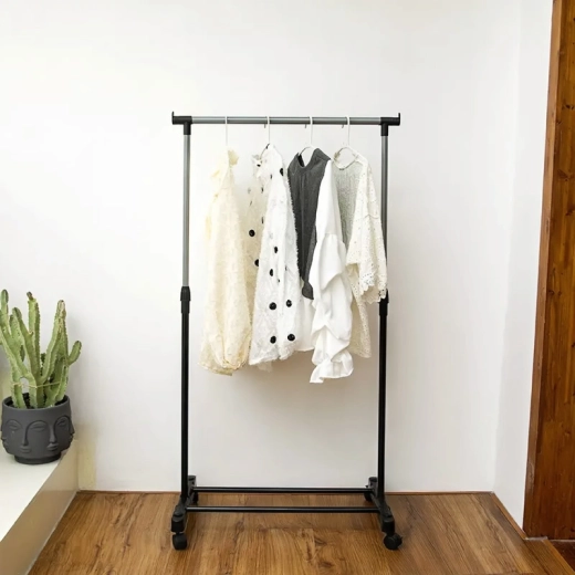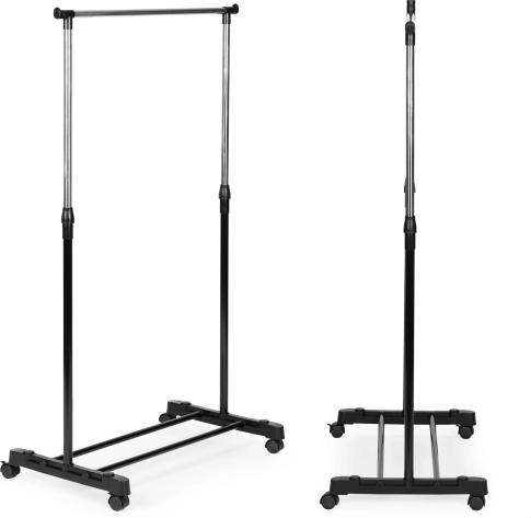 Stojací vešiak je praktický na skladovanie oblečenia a topánok, takže bude perfektným doplnkom pre každú šatňu, spálňu alebo halu vo vašom dome či byte. Nastaviteľný vešiak môžete použiť kdekoľvek, kde nie je priestor na zavesenie oblečenia bez skrine, a vďaka kolieskam ho môžete umiestniť kamkoľvek chcete.