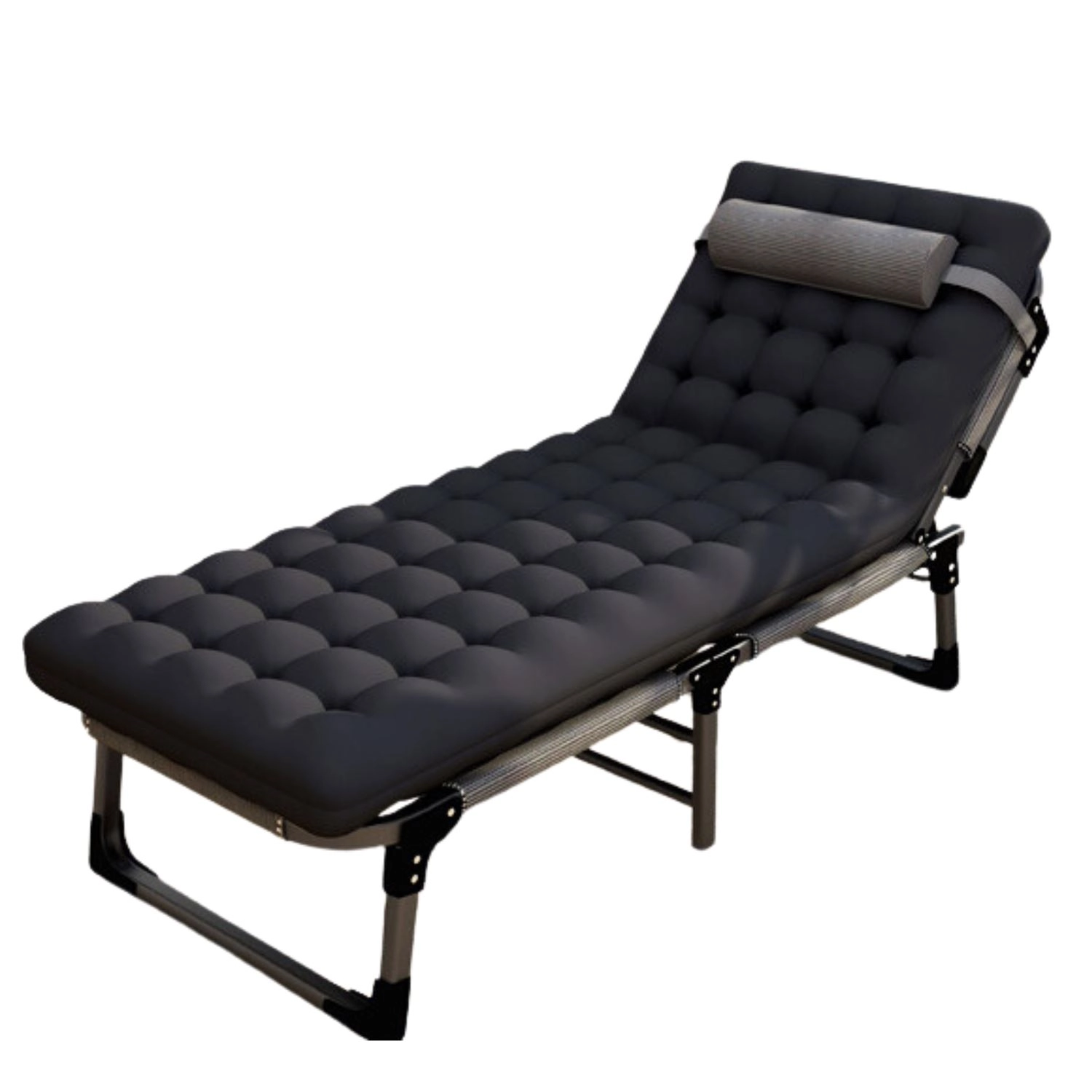 Univerzálne skladacie ležadlo s rozmermi 193 × 68 cm na pohodlný odpočinok v kancelárii, doma aj na cestách. Ponúka stabilnú oceľovú konštrukciu, priedušný matrac s výškou 8–9 cm, nosnosť 150 kg a 5-úrovňové polohovanie opierky hlavy pre maximálny komfort.