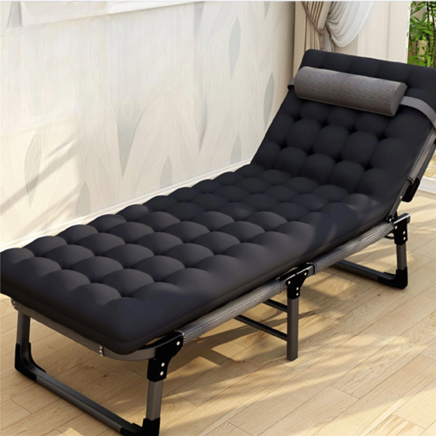 Toto skladacie ležadlo je ideálne ako núdzové lôžko pre hostí, relax v kancelárii aj odpočinok pri kempovaní. Robustný oceľový rám so zámkovým mechanizmom zabezpečuje výnimočnú stabilitu bez nechceného kývania, zatiaľ čo priedušný poťah z Oxford tkaniny a silná výplň z perlovej bavlny poskytujú pohodlné ležanie.