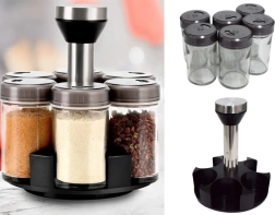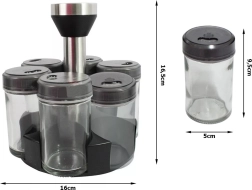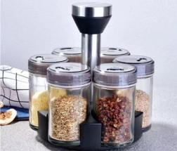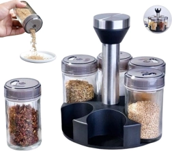 Otočný stojan na koreniny so 6 sklenenými koreničkami s dávkovačom