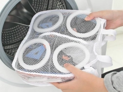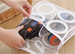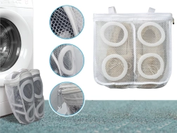 Hustá sieťovina a zips chránia obuv pred odermi a nárazmi, zároveň bránia poškodeniu bubna práčky.