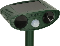 Solárny odpudzovač je navrhnutý tak, aby efektívne odrádzal krysy, myši, kuny, mačky, vtáky a ďalších nechcených návštevníkov pomocou ultrazvuku o premenlivej frekvencii. Tento užívateľsky prívetivý prístroj funguje na princípe pohybového senzoru, ktorý sa aktivuje iba vtedy, keď je zviera v blízkosti, čo maximalizuje úsporu energie.