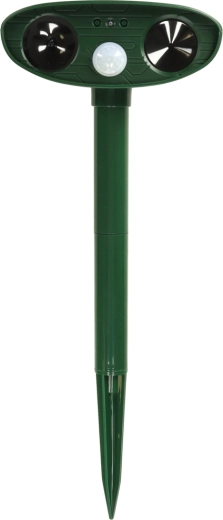 Tento odpudzovač má prevádzkový dosah 6 až 8 metrov, takže pokryje veľké plochy ako záhrady, sady či rekreačné areály. Je vyrobený z odolného plastu v zelenej farbe, ktorý splynie s okolím a je odolný voči všetkým poveternostným podmienkam.