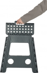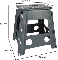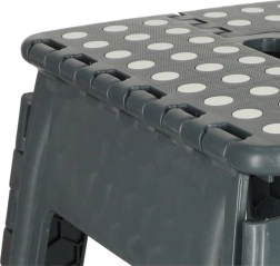 Táto skladacia stolička je ideálnym pomocníkom do kuchyne, kúpeľne, dielne aj detskej izby. Robustný plast a protišmyková úprava hornej plochy zabezpečujú istý krok a pohodlné používanie. Po zložení má stolička kompaktné rozmery, takže ju ľahko uložíte do skrine alebo za dvere.