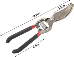 Kompaktné záhradné nožnice z kovanej ocele na presné a čisté strihy kvetov, kríkov a mladých konárov. Odolná čepeľ, pohodlné ergonomické rukoväte a bezpečnostná poistka na bezpečné uloženie. Ideálny pomocník na údržbu záhrady s dlhou životnosťou a jednoduchou manipuláciou.