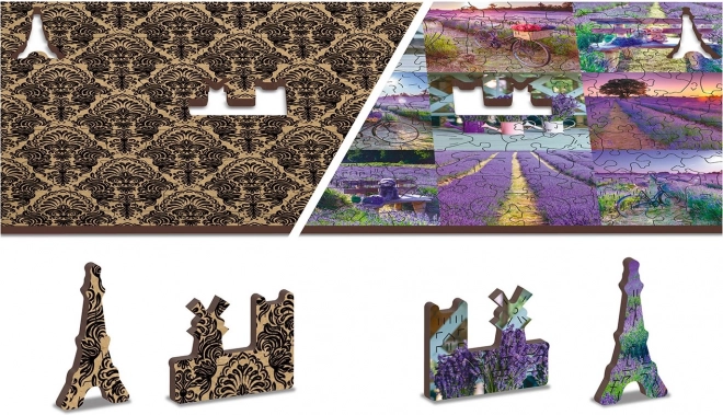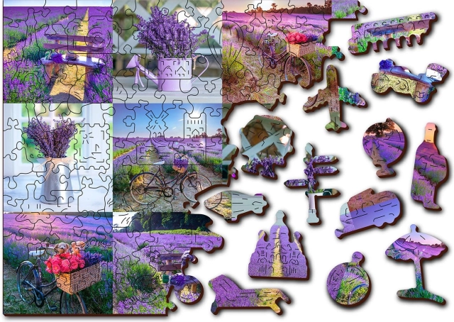 Doprajte si relax pri kvalitnom drevenom puzzle s motívom levanduľových polí. Obojstranné vyhotovenie 2v1 umožní skladať podľa farebného obrázka aj podľa zadnej strany s opakujúcim sa vzorom – ideálne pre tých, ktorí milujú premyslené výzvy a precízne spracovanie.