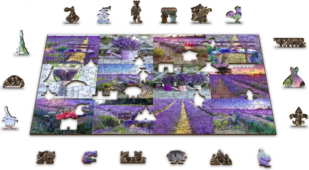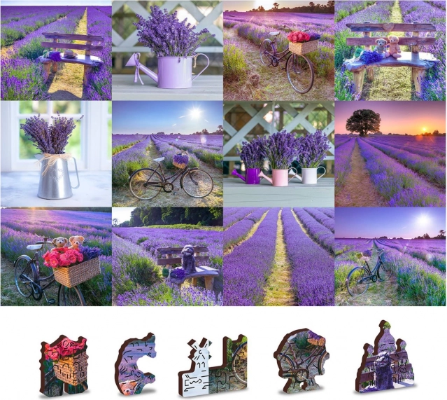 Puzzle je obojstranné, umožňuje skladanie podľa levanduľového motívu alebo podľa vzoru na rubovej strane.