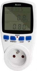 Bezpečnosť zabezpečuje alarm preťaženia s nastaviteľným prahom maximálneho výkonu. Ovládanie je rýchle a intuitívne vďaka len štyrom tlačidlám (SET, ENERGY, COST, UP). Stačí zapojiť do zásuvky, pripojiť spotrebič a ihneď máte jasno, koľko skutočne stojí jeho prevádzka.
