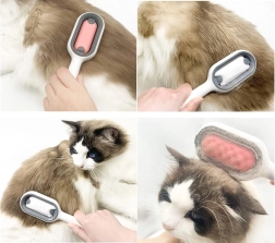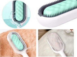 Silikónová vyčesávacia kefa 3 v 1 kombinuje účinné vyčesávanie, šetrné umývanie a odstraňovanie chlpov z textílií. Na silikónový vankúšik možno priložiť vlhkú utierku a počas česania tak srsť zároveň jemne umývať, čo uľahčuje zber vypadanej srsti a zanechá kožuch čistý a lesklý.