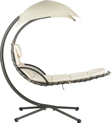 Toto závesné ležadlo je skvelým doplnkom vašej záhrady alebo terasy, ponúka priestor pre relaxáciu na čerstvom vzduchu s ochranou pred slnkom vďaka nastaviteľnému baldachýnu.