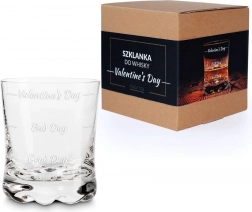 Pohár na whisky na Valentína je skvelým darčekom pre tých, ktorí majú zmysel pre humor a chcú si užiť každodennú pohodu. Vďaka trom úrovniam naplnenia - „Dobrý deň“, „Zlý deň“ a „Valentín“ - si môžete vtipne prispôsobiť množstvo svojho obľúbeného nápoja podľa nálady.