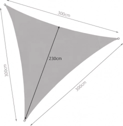 S trojuholníkovou slnečnou plachtou 3x3x3m sivej farby si vytvoríte príjemný tieň kdekoľvek vonku. Plachta je všestranne použiteľná - môžete ju inštalovať nad terasu, na záhrade alebo v kempingu. Vďaka špeciálnej vodoodolnej vrstve sa ľahko udržiava a odoláva vlhkosti a plesniam.