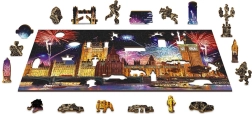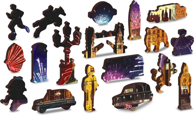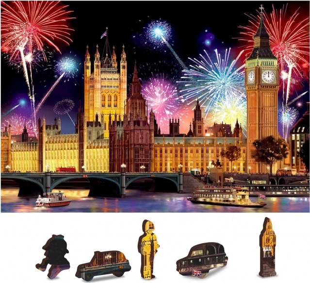Prinesite si kúsok Londýna domov s fascinujúcim dreveným puzzle Nočný Londýn 2v1. Táto skladačka obsahuje celkovo 150 dielikov, z ktorých 30 je unikátne tvarovaných, zobrazujúcich ikonické stavby a symboly hlavného mesta Veľkej Británie. Pri skladaní sa pripravte na vyššiu obtiažnosť vďaka rôznorodo tvarovaným dielikom, ktoré predstavujú výzvu aj pre skúsených skladateľov.