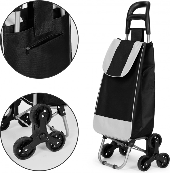 Vozík je vybavený trojitými gumenými kolesami pre jednoduché prekonávanie prekážok ako sú obrubníky alebo schody, čo umožňuje jednoduchý transport vášho nákupu s minimálnou námahou.