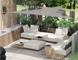 Vytvorte si príjemnú tienistú zónu na relax aj stretnutia. Trojuholníkový tvar plachty v modernom sivom odtieni sa hodí k väčšine exteriérov a vďaka vodoodpudivej úprave a ochrane proti UV žiareniu zaistí komfort aj v teplých dňoch. Zosilnené švy, robustné D-krúžky a odolné rohy poskytujú dlhú životnosť a stabilitu pri správnom napnutí.