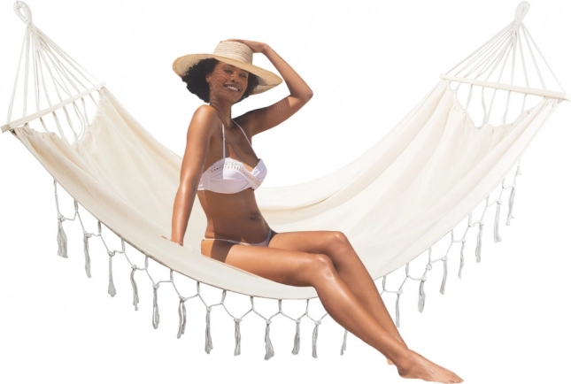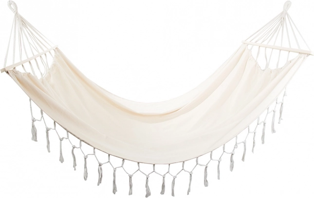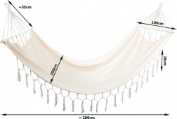 Užite si dokonalý relax na čerstvom vzduchu v elegantnej boho hojdacej sieti pre dve osoby. Vďaka priestrannej ploche 200 × 150 cm, nosnosti až 200 kg a dekoratívnym strapcom ponúka štýlové pohodlie na záhrade, terase aj doma. Odolná tkanina, drevené rozpierky a pevné závesné laná zaručujú stabilitu a jednoduché zavesenie.