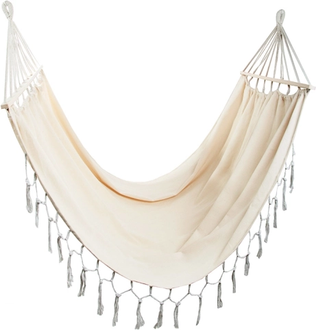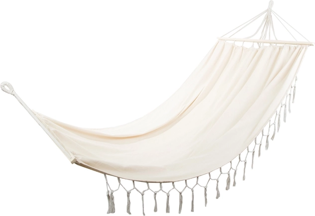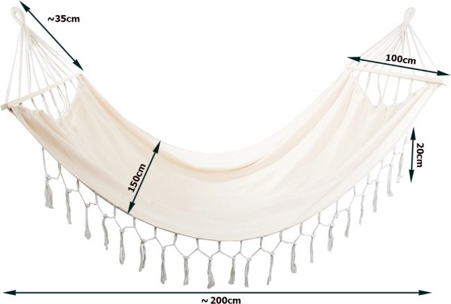 Táto boho hojdacia sieť je ideálna pre páry aj jednotlivcov, ktorí milujú pohodlie a štýl. Široká ležiaca plocha s drevenými rozpierkami drží látku pekne rozprestretú, takže sa pohodlne uvelebíte a vychutnáte si pokoj na záhrade, balkóne alebo na dovolenke.