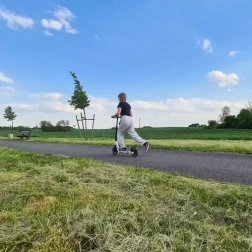 - Regulácia výšky riadidiel na "klik" – kolobežka je vybavená 3-stupňovou reguláciou výšky riadidiel pre maximálne pohodlie. Jednoduchým stlačením tlačidla zmeníte výšku.