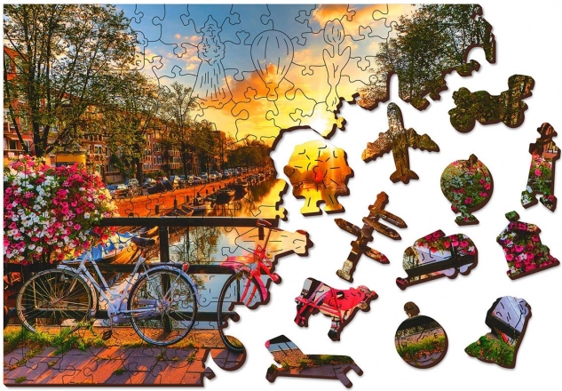 Drevené puzzle Bicykle v Amsterdame